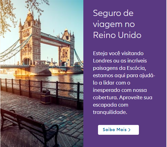Estamos aqui para ajudá-lo com alguns dos imprevistos mais comuns, com cobertura para despesas médicas, estadia prolongada ou repatriação, se necessário, perda de bagagem e muito mais.